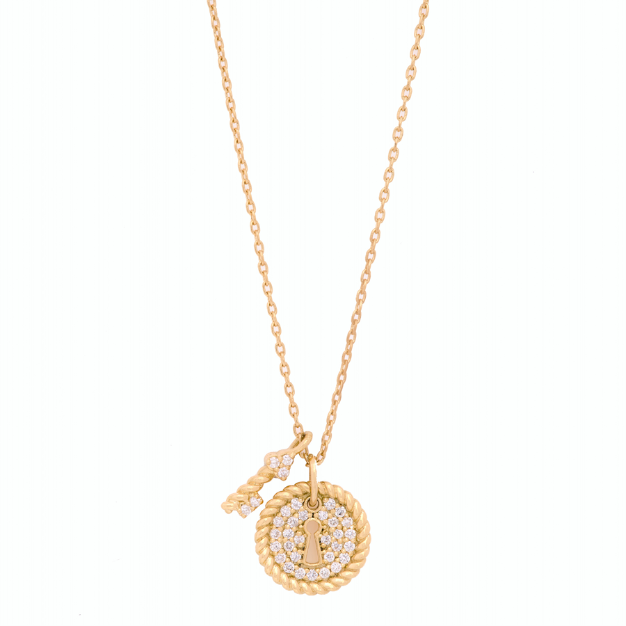 With this lock and key gorgeous 18K yellow gold design, featuring 0.2ct diamonds, your neck will be surrounded with a lively touch. It’s the perfect necklace for a woman who’s always trendy and elegant.