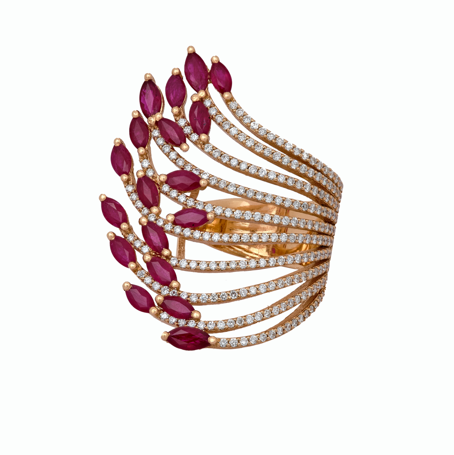 An exceptional night and you need a stunning piece? This royal 18k rose gold is the answer. With its elegant branches studded with 1.29CT diamonds ended with vivid 3.22CT Ruby, you’ll be the night’s queen.