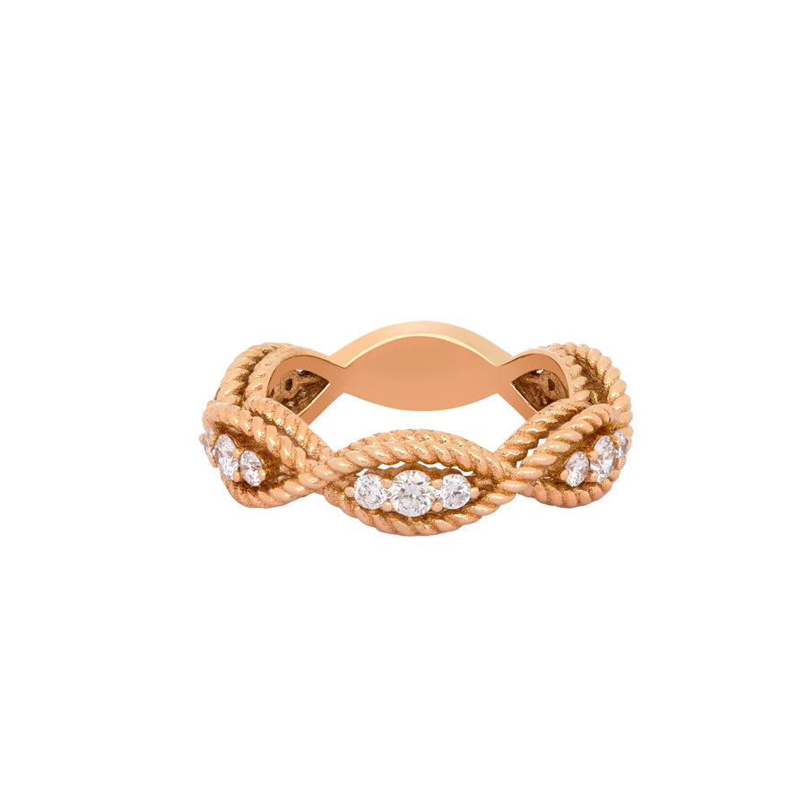 0.77ct shiny diamonds surrounded with fine braided 18K yellow gold. Because you always need a classy ring for a confident look.